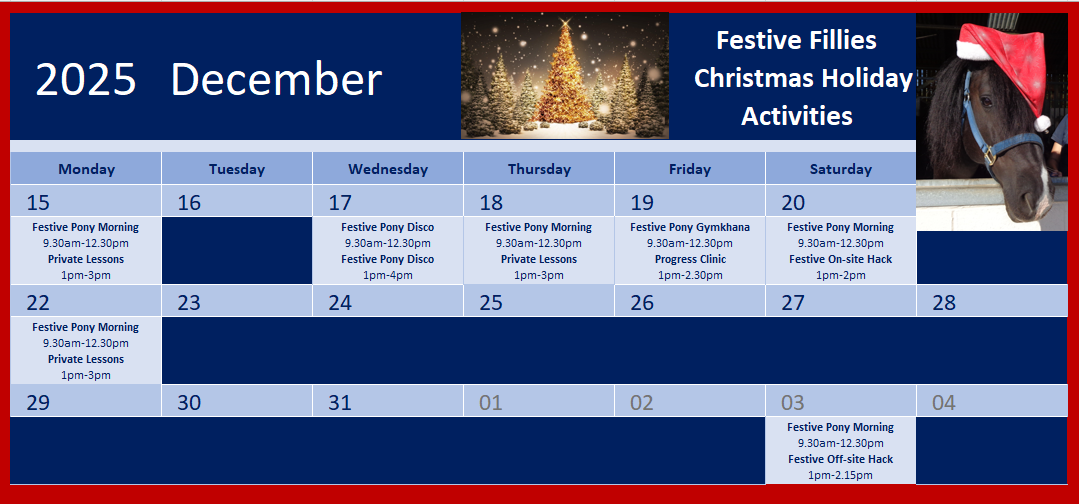 Join us for fun seasonally-themed Pony Mornings/Afternoons during the holidays.